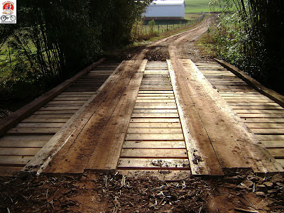 Descendo em direção a ponte que estava caindo, fui me perguntando em que estado estaria a mesma, se teria 'cruzo', uma van escolar cruzou por mim, seria um bom sinal, ao chegar lá, a surpresa, a ponte foi reformada: