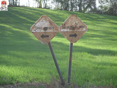 Segui pedalando na localidade de Três Passos, onde em um cruzamento em 2010 encontramos uma "macumba de pedra", quando seguíamos a Nicolau Vergueiro.