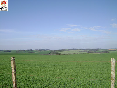 No cruzamento entrei a esquerda, e a partir dali tudo era novidade, mas não tem muita coisa a se ver, apenas plantações, pasto, trigo, algumas cabeças de gado e mais nada.