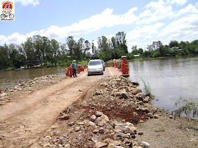 Chegamos em Nicolau Vergueiro era próximo do meio-dia, paramos no posto na entrada da cidade, não tinha ninguém por lá, reabastecemos as caramanholas e seguimos para a barca.